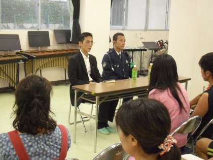 警察の方が持って来てくださった映像を見たあと、子供たちに問いかけ、大切なことを教えてくださいました。その後教員、保護者の方と警察の方で話し合いをしました。