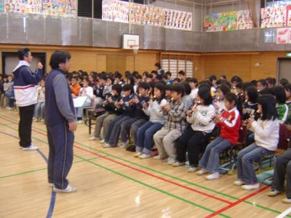 今、5年生の音楽の授業は、学年合同です。入場・退場の音楽、呼びかけの中での合唱など在校生代表としての5年生の役割は、とても重要です。今日は、リコーダーの演奏と、合唱を練習していましたが、さすがに5年生です。きれいな音色と美しいハーモニーが響いていました。きびきびとした動きの中に、6年生への感謝と信頼、そして在校生代表としての自覚がにじみ出ていました。