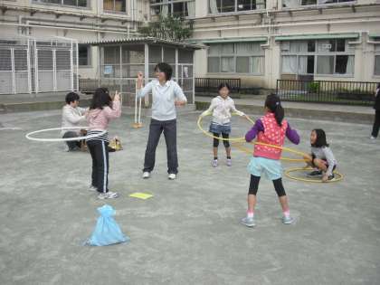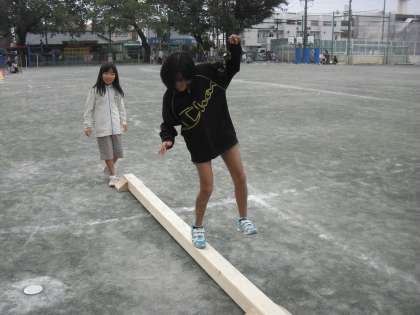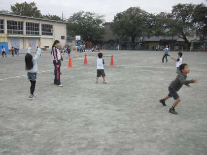 どのコーナーも身近にある道具を使った単純なものですが、やってみると意外におもしろかったり、むずかしかったり。子供たちは身体を動かしながら思い切り楽しんでいました。今日は児童が86名、幼児が21名、お手伝いの方を含めて大人が45名の参加でした。