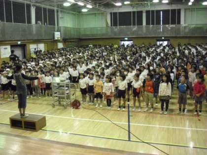 最後は全員で校歌斉唱。開校記念集会にふさわしい元気のいい声が体育館に響き渡りました。