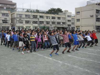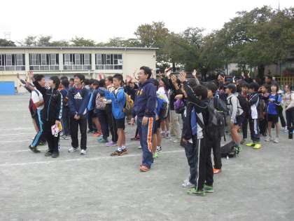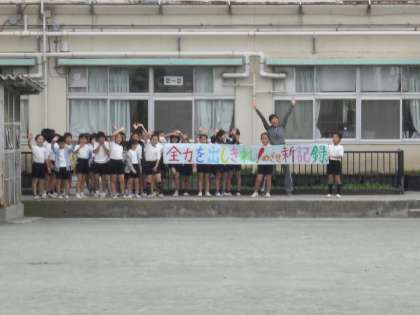 たった今6年生が連合運動会の会場に向けて出発しました。出発前には6年生を応援する下級生の姿が見られました。