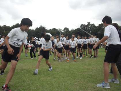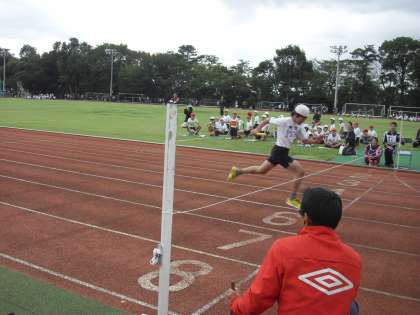 10/23 6年連合運動会2 公開日 2013/10/23 更新日 2013/10/23 校長室より リレーの選手は6年生の代表としての自覚と責任をもって練習を重ね、確実なバトンパスも身に付けました。レースでは男子のAチームが圧倒的な強さでゴールしました。また、女子のAチームのその組の1位になりました。 午後には男子の個人種目が行われ、いよいよ最終種目の長なわとびになりました。初めに1,4組が、2回目に2,3組がとびました。