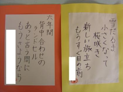 3/11 6年生の心境(ある学級の掲示板より) 公開日 2008/03/11 更新日 2008/03/11 校長室より 用賀小学校卒業まであと・・・・ 一日一日が大切な日々です。そんな6年生の学級掲示板。 なんだか、とても・・・