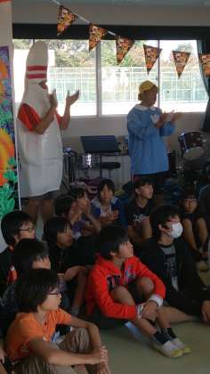 用賀小学校の6年生のために、英語支援委員の皆さんが、楽しい催しを企画して下さいました。