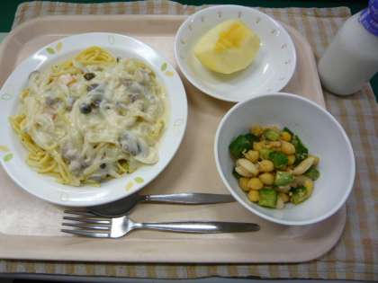 今日のスパゲッティは、「森のスパゲッティ」です。きのこのマッシュルームとしめじが入っています。そこでクイズです。英語で、マッシュルームは何という意味でしょうか。