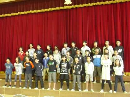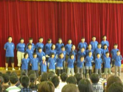 11/7 6年合唱祭1 公開日 2013/11/07 更新日 2013/11/07 学年 6年生が5校時に体育館で合唱祭を行いました。クラスごとに自分たちで曲を選んで、音楽の授業や教室で練習をし、今日は保護者、先生、下級生をお招きして、練習の成果を発表しました。 曲目は、1組はハナミズキ、2組は手紙、3組はYELL、4組はひこうき雲です。