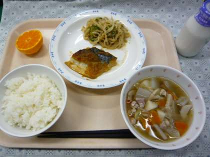 11/11 本日の給食 公開日 2013/11/11 更新日 2013/11/11 給食 〜今日の献立〜 ごはん 牛乳 さばのみそ煮 野菜のごま酢和え 吉野汁 くだもの(みかん) 〜給食メモ〜 今日は、「吉野汁」のクイズを出したいと思います。吉野汁は、どこの郷土料理でしょうか? 1.京都府 2.奈良県 3.和歌山県 ※クイズのこたえは、「食材がとれたところ…」の最後にのせています。 食材がとれたところ・・・ 閉じる 米…埼玉県 鶏肉…岩手県 さば…ノルウェー しょうが…高知県 もやし…栃木県 きゅうり…長野県 にんじん…北海道 だいこん…神奈川県 れんこん…茨城県 さといも…埼玉県 長ねぎ…新潟県 みかん…愛媛県 クイズのこたえは、2の「奈良県」です。吉野汁は、すまし汁にくず粉を溶いて、とろみをつけた汁です。くずの産地が奈良県の吉野であることから名前がつきました。今は、くず粉が貴重品になったため、代わりに片栗粉を使うことが多くなりました。とろみをつけることによって、汁が冷めにくくなるので、寒い日にぴったりの料理です。