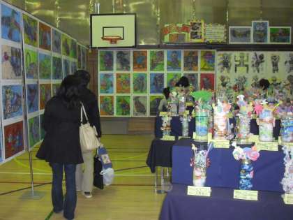 11/15 展覧会2 公開日 2013/11/15 更新日 2013/11/15 展覧会 3時からは保護者鑑賞時間。冷たい雨が降る平日の午後ではありますが、多くの保護者の皆様にご来校いただき、子供たちの作品を見ていただきました。親子でいらした方も多く、子供たちがうれしそうにしていました。 明日は9時30分の開館です。皆様のお越しをお待ちしております。