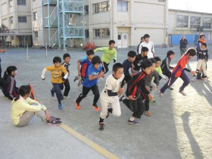子ども駅伝にようがの学び舎チームとして参加をする用賀小と京西小の第2回目の合同練習を用賀小の校庭で行いました。今回で2回目ということで子どもたちは互いにチームの仲間として練習を迎えました。