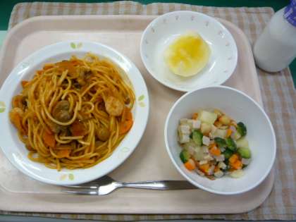 12/3 本日の給食 公開日 2013/12/03 更新日 2013/12/03 給食 〜今日の献立〜 スパゲッティナポリタン 牛乳 ポテトサラダ くだもの(りんご) 〜給食メモ〜 今日のポテトサラダには、豆が入っています。そこでクイズです。今日のサラダに入っている豆は、何という豆でしょうか? 1.大豆 2.うずら豆 3.ひよこ豆 ※クイズのこたえは、「食材がとれたところ…」の最後にのせています。 食材がとれたところ・・・ 閉じる 豚肉…青森県 えび…タイ たまねぎ…北海道 にんじん…千葉県 ピーマン…高知県 きゅうり…宮崎県 りんご…青森県 クイズのこたえは、3の「ひよこ豆」です。形がひよこに似ていることから、「ひよこ豆」と名前がつけられたそうです。ひよこ豆は、ホクホクしていて、とってもおいしいです。からだをつくってくれる「たんぱく質」や、骨を丈夫にしてくれる「カルシウム」がたくさん入っているので、残さず食べましょう。