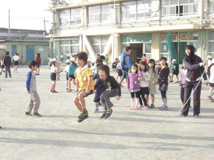 12/4 わくわくタイム 公開日 2013/12/04 更新日 2013/12/04 校長室より 今日の朝はわくわくタイム。担任と子どもたちでのクラス遊びです。長縄跳びにドッジボール、鬼ごっこなど、クラスで遊びを決めてみんなで楽しみます。寒い朝でしたが、子どもたちの笑顔と歓声が校庭に広がりました。 わくわくタイムは、遊びを通して子どもたちどうし、担任と子どもたちの関係が深まる大切な活動です。