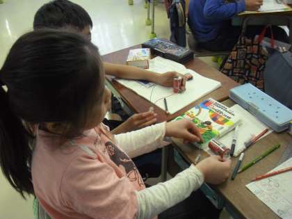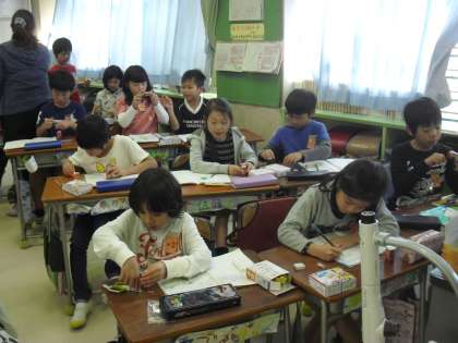 3年生から理科の学習が始まります。3年1組では豆電球の明かりをつけることで電気の性質について調べる学習をしていました。全員が導線がつないである豆電球と乾電池を持ち、どんな時に明かりがつくのかさまざまな実験をしていました。