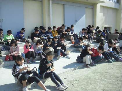 そして、楽しい会食。体育館の脇に座って、友達と楽しく食べている子どもたちもいました。