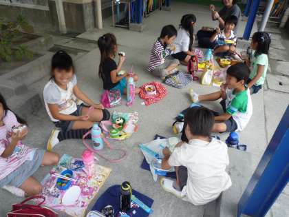 今日の1年生の遠足は5日に延期になりました。1年生はちょっぴり残念そうでしたが、お外でおいしいお弁当が食べられたので大満足。