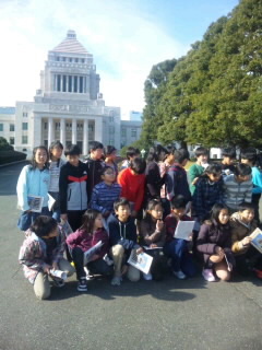 六年生社会科見学1 公開日 2013/12/17 更新日 2013/12/17 校長室より 国会議事堂の見学です。参議院を見学しました。三権分立と国会、国会の権能など事前学習をしているので興味深く見学をしていました。