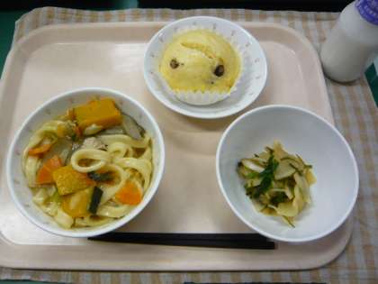 12月22日は、冬至です。冬至は、1年で昼の長さが一番短い日です。22日は給食がないので、今日の献立を冬至メニューにしました。そこでクイズです。冬至の日に食べると風邪をひかないと言われているものは、次のうちのどれでしょうか?