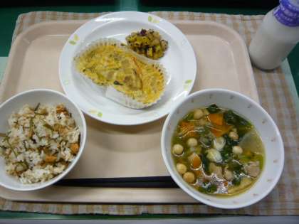 毎月19日は、食育の日です。食育の日は、ようがの学び舎で一緒に勉強している、京西小学校と用賀中学校と同じ献立です。今日の献立は、用賀中学校の栄養士さんが考えてくれました。