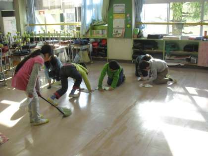 また、大掃除の時間にはこれからまた自分たちがお世話になる教室などを心を込めてきれいにしていました。
