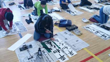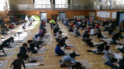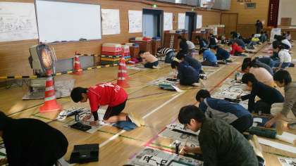 今年は、同窓会から頂いた、大型ストーブのおかげで、暖かい体育館での席書会となりました。