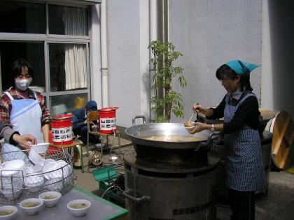 スタンプラリーから帰ると、大きなお鍋に豚汁があります。