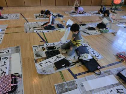 1/11(土) 3年生 書き初め 公開日 2014/01/14 更新日 2014/01/14 学年 1/11(土)に3年生は体育館で書き初めをしました。 3年生の課題は「つよい力」。 冬休みの練習の成果を出し、よいものを書こうと集中する様子には、まさに力強さを感じました。 今年もよい1年になるといいですね。