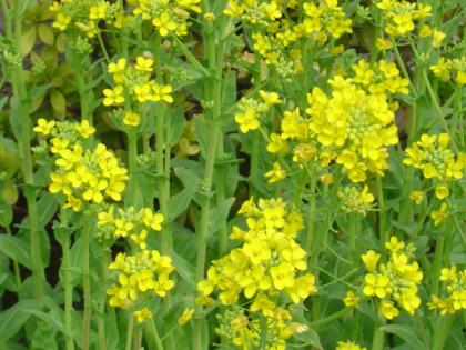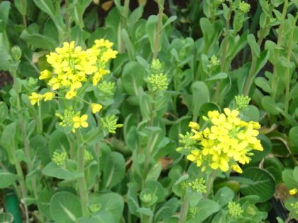 先日お知らせしました、菜の花が満開です。チンゲンサイの菜の花の横には小松菜の菜の花です。菜っ葉は違うのに、花はまったく一緒です!