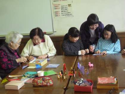 ランチルームでは用賀小学校創立50周年記念すごろくや福笑いをしている子もいました。折り紙コーナーでは地域の方が今年の干支である午の折り方を丁寧に教えてくれました。午が完成した子はとても嬉しそうでした。