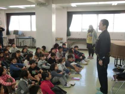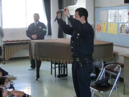 子供たちは「本物のお巡りさんが来た!」と真剣に話しを聞いていました。