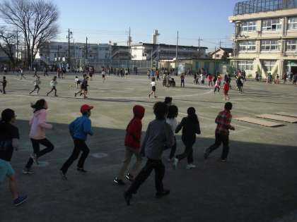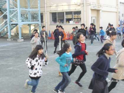 今は5,6年生は2月に総合運動場で行われる校内駅伝大会に向けて走る力を高めています。また、4年生も学校でミニ駅伝大会をします。