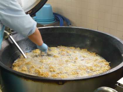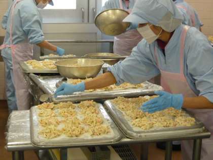 かみかみかきあげ丼は、野菜がたっぷり入っていて、たくさん噛むことができるので歯ごたえがあります。豚汁は、ごぼうが入っているのでとてもかむことができます。なので消化がよくなります。