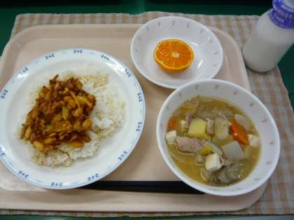 今日は、学校給食週間最終日です。今日の献立は、6年2組の給食委員さんが中心になって考えてくれた「かみかみメニュー」です。