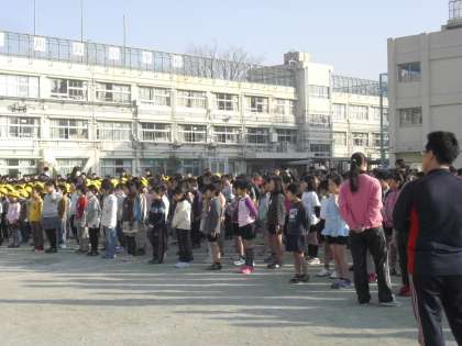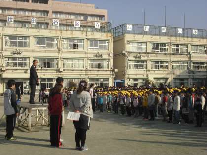 今日は防災の話をします。先月11日に実際に3年前に震災に遭われた宮城県気仙沼市役所に勤める三浦さんという方が用賀小学校にいらして、先生や皆さんのお父さん、お母さんに震災の話をしてくださいました。その中で先生が大切だと思ったことを今からお話します。