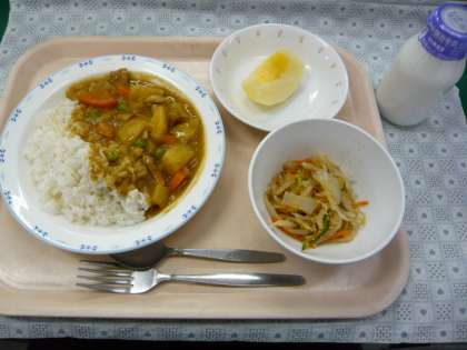 今日のサラダには、「こんにゃく」が入っています。そこでクイズです。こんにゃくは、何から作られているでしょうか?