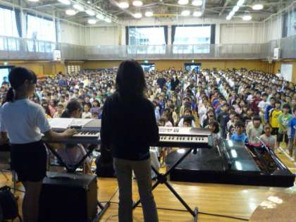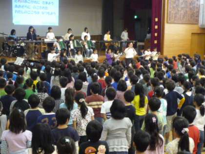 10/7 音楽集会「少年時代」 公開日 2009/10/07 更新日 2009/10/07 校長室より 今日の音楽集会は、インフルエンザの流行を配慮して延期になっていた9月の歌「少年時代」を歌いました。 なつがすぎ、かぜあざみ・・・ 子どもたちの美しい歌声が響きました。用賀小学校の音楽集会は1年生から6年生までみんなが楽しく歌う、とても素敵な集会です。各学年の発表もありますのでお聞きいただけると幸いです。