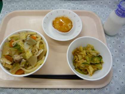 2/6 本日の給食 公開日 2014/02/08 更新日 2014/02/08 給食 〜今日の献立〜 煮込みうどん 牛乳 土佐漬け いももち 〜給食メモ〜 今日は、「いももち」のクイズを出したいと思います。いももちは、蒸したいもを潰して、丸めて焼いた料理です。今日のいももちには、何のいもを使ったでしょうか? 1.さといも 2.じゃがいも 3.さつまいも 今日も、残さず食べましょう。 ※クイズのこたえは、「食材がとれたところ…」の最後にのせています。 食材がとれたところ・・・ 閉じる 鶏肉…岩手県、宮崎県 じゃがいも…北海道 ごぼう…青森県 にんじん…千葉県 だいこん…神奈川県 はくさい…群馬県 長ねぎ…千葉県 きゅうり…群馬県 キャベツ…愛知県 クイズのこたえは、2の「じゃがいも」です。じゃがいもを使ったいももちは、北海道の郷土料理です。じゃがいもには、風邪を予防してくれるビタミンCがたくさん入っています。