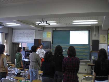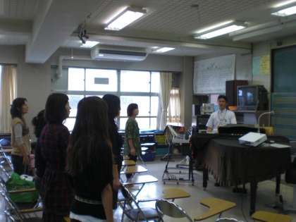 台風の吹き返しの風が強い中、学校公開週間の最終日です。今日は3回目のYWコミュニケーションとして、音楽の廣石先生との楽しいひと時をもちました。