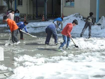そんな中今日の昼休みに5年生の子どもたちが雪(氷)かきの仕事をしてくれました。学校のために力になりたいという思いがその一生懸命な作業ぶりから伝わってきて、心を打たれます。
