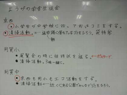 京西小学校・用賀小学校・用賀中学校の三校による『ようがの学び舎生徒会』が15名で結成され、次の3点を実施することになりました。