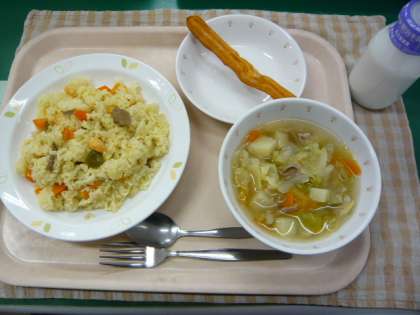 今日も、調理員さんが一生懸命作ってくれました。残さず食べましょう。