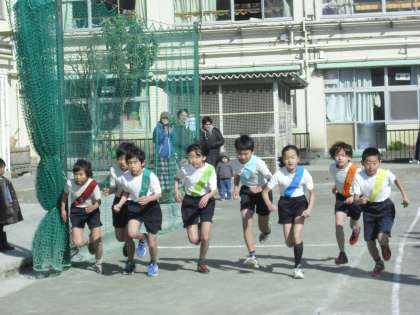 4年生のミニ駅伝大会が晴天の下、学校の校庭で行われました。今日は土曜日ということもあり、多くの保護者の方にご参観いただき、子どもたちに大きな声援を送ってくださいました。