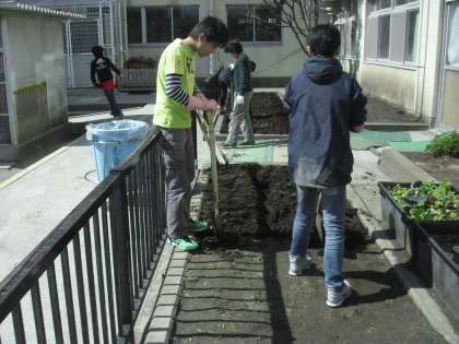 名前はチョボラですが、中にはとても大がかりなものもありました。校庭の体育倉庫の中の用具をすべて出しての大掃除、体育館のステージ下の大きな棚の整理や清掃。また、痛んできた歩道沿いの看板の作成等。校長室の掃除や畑の耕しもしてくれました。