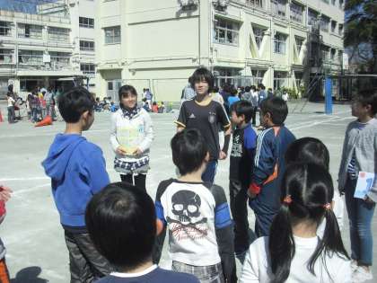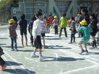 今日は今年度最後のなかよしタイムです。この班のメンバーで遊ぶのも今日が最後です。これで6年生はなかよし班を卒業します。リーダーではなくなった6年生がうれしそうな表情をして遊んでいたのがとても印象的でした。いつも黄色い帽子をかぶっていた1年生は今日で黄色い帽子ともさよならです。4月からは新しい1年生が黄色い帽子をかぶります。