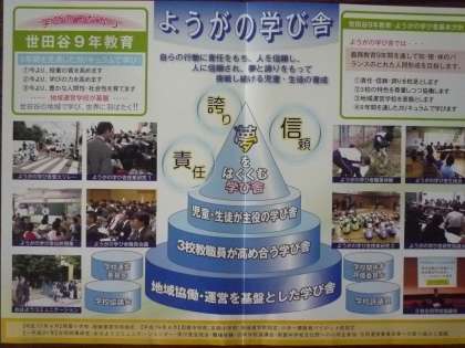 昨日、第六回学校運営委員会が行われました。今月の協議内容は、主に世田谷9年教育「ようがの学び舎』についてでした。校長から学校の現況の報告、用賀小学校の現在の取り組みについてのプレゼンテーションの後、協議に入りましたが、厳しいご意見をたくさん頂きました。もちろん、地域運営学校として5年目を迎えている中で、学校が前進していることへの高い評価も頂きましたが、3校の連携「9年教育」のために克服しなければならない多くの課題についてのご指摘は、肝に銘じるべき内容でした。