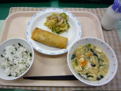 今日の給食は、「ジャンボ春巻き」です。そこで今日は、「春巻き」のクイズを出したいと思います。春巻きの名前の由来は、次のうちのどれでしょうか?