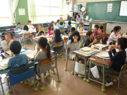 1年生は、2回目の給食でした。くまちゃんのパンをおいしそうに食べている姿が、とてもかわいかったです。明日からは完全給食となります。小学校の給食に早く慣れるように頑張ってほしいです。
