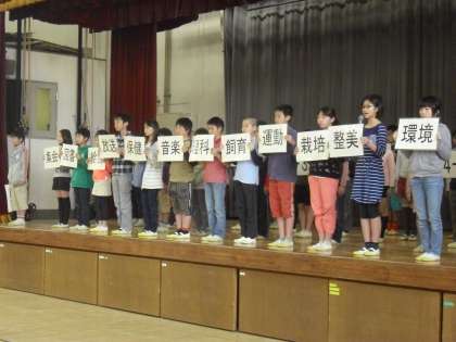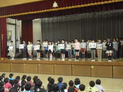 4/16 前期委員長発表集会 公開日 2014/04/16 更新日 2014/04/16 委員会・クラブ活動 先週今年度の委員会が組織されてまだ数日ですが、前期の各委員長の発表集会を行いました。5,6年の運営委員、4〜6年の各学級の代表委員、各委員会の委員長が体育館のステージに勢ぞろい。 どの子も自ら進んで引き受けた役ですので、一人一人の言葉は力強く、決意の気持ちにあふれていました。 この子どもたちがこの半年間の用賀小学校の中心となり、学校を引っ張っていきます。これからの活躍が楽しみです。