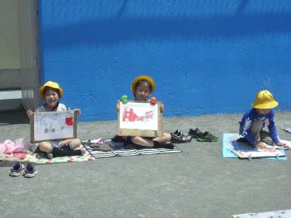 子供たちは消防士の方と触れ合いながらおのおの画用紙いっぱいに消防車の絵をのびのびと描いていました。これを機に子供たちの防災意識が少しでも高まるといいです。