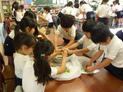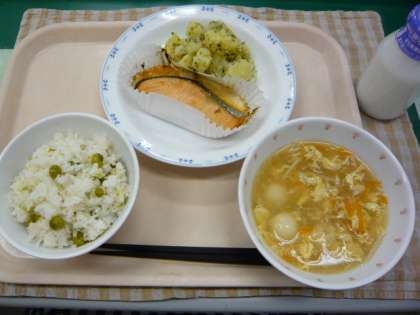 今日のグリンピースは、3年生と給食委員さんがさやむきをしてくれました。頑張ってくれた3年生と給食委員さんに感謝して、残さずに食べましょう。