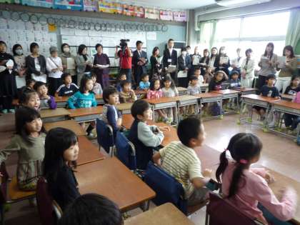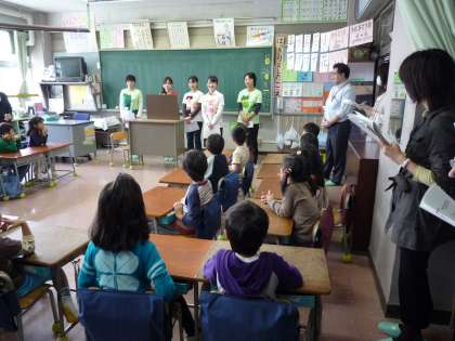 10/23 食育授業 1年生 公開日 2009/10/23 更新日 2009/10/23 校長室より 今日の食育授業は、1年生のべジレンジャーの授業です。生活科の野菜大好きという単元での学習ですが、東京都の研修センターの授業として、都内から40人近くの先生方が見えられました。どの先生方も用賀小学校の1年生を誉めてくださるのでうれしくなりました。本当に子どもたちは、賢くて、やる気いっぱいで素敵でした! 農大の古庄先生、学生さんありがとうございました。