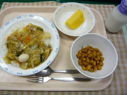 今日のくだものは、「パイナップル」です。そこでクイズです。今日の給食のパイナップルは、どこで作られたものでしょうか?